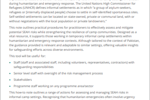 - This guidance note outlines disability-inclusive safeguarding practices for humanitarian and development programming to ensure the protection and inclusion of persons with disabilities.
